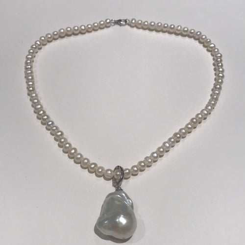 Necklace with Baroque Pendents Silver
