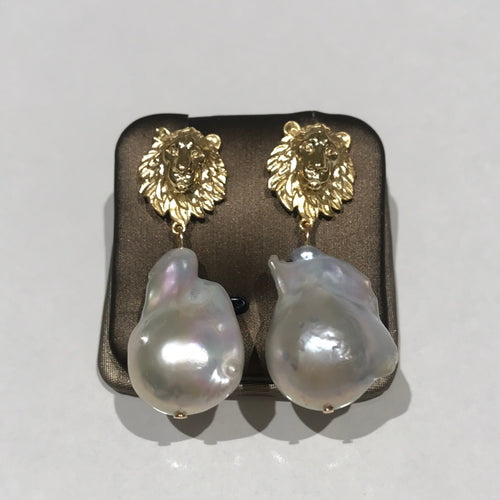 Sterling Silver Lions and Massive Baroque Earrings