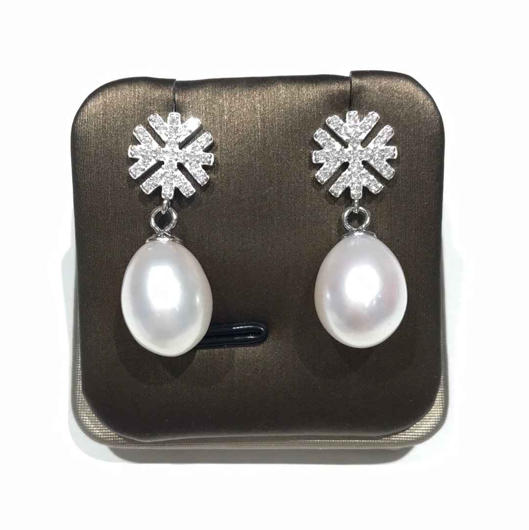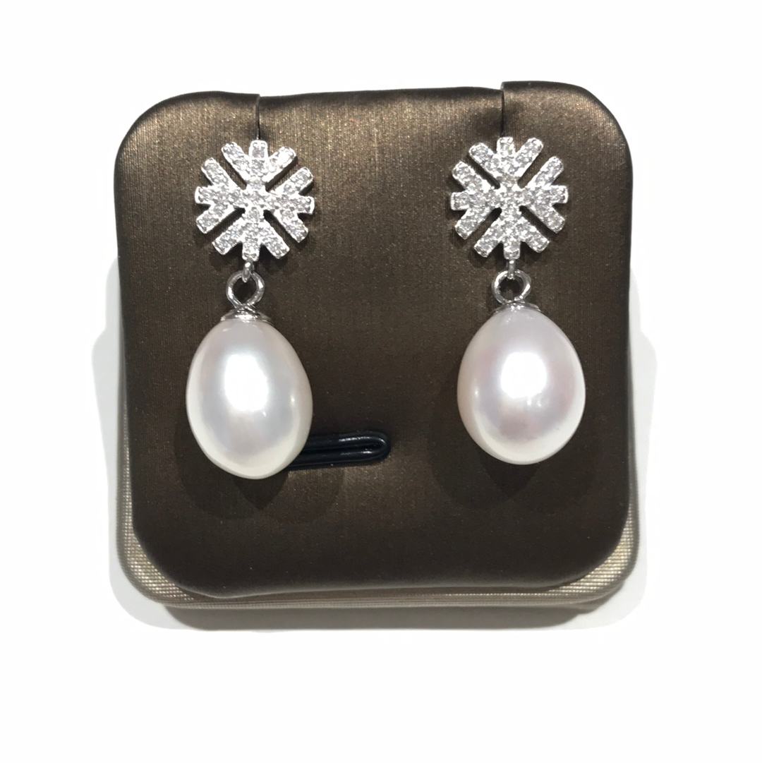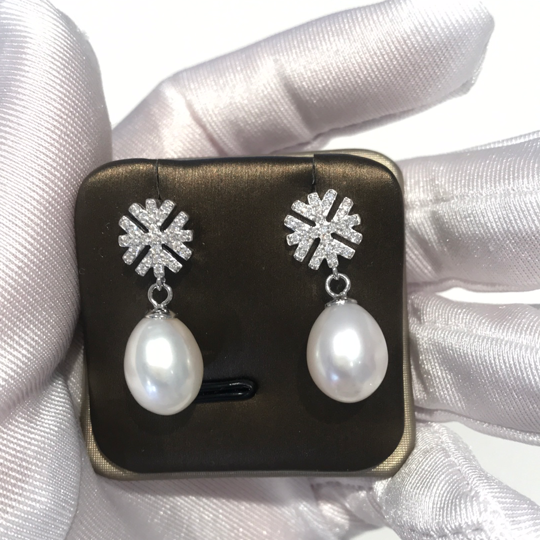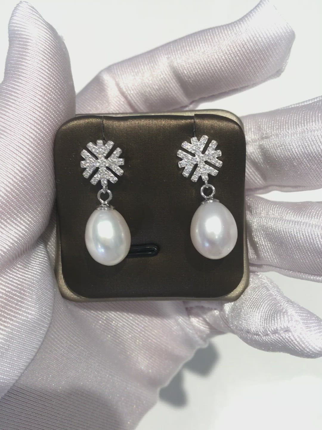 The earrings are for various occasions, from daily work to parties. They are made of best grade tear drop Freshwater Pearls and Sterling Silver. The side stones are Zircon. The pearl size is around 9-10 MM.